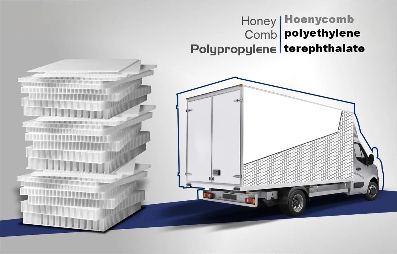 Кузов сухогруза с сотовым сердечником — это передовое логистическое решение, которое заменяет традиционные гофрированные стальные стены. с высокоэффективной сэндвич-композитной структурой (Skin Sheet + Honeycomb Core + Skin Sheet).
